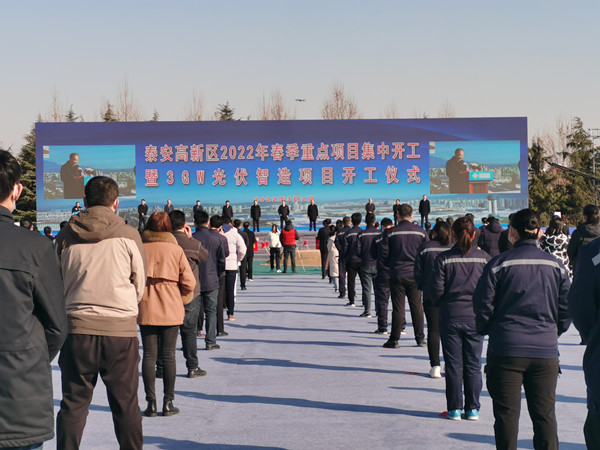 3月2日上午,泰安高新區(qū)2022年春季重點(diǎn)項(xiàng)目集中開工暨年產(chǎn)3GW太陽能光伏智造項(xiàng)目開工儀式正式召開,開工儀式由高新區(qū)黨工委書記、管委會主任劉斌主持,市領(lǐng)導(dǎo)楊洪濤、常緒擴(kuò)、張穎、宋洪銀及范福順、李勇參加。我公司英大電力裝備有限公司總經(jīng)理徐勇應(yīng)邀出席。